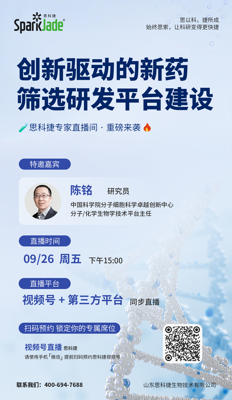 思科捷特邀中国科学院分子细胞科学卓越创新中心分子/化学生物学技术平台主任陈铭研究员,带来一场关于“创新驱动的新药筛选研发平台建设”的深度分享。