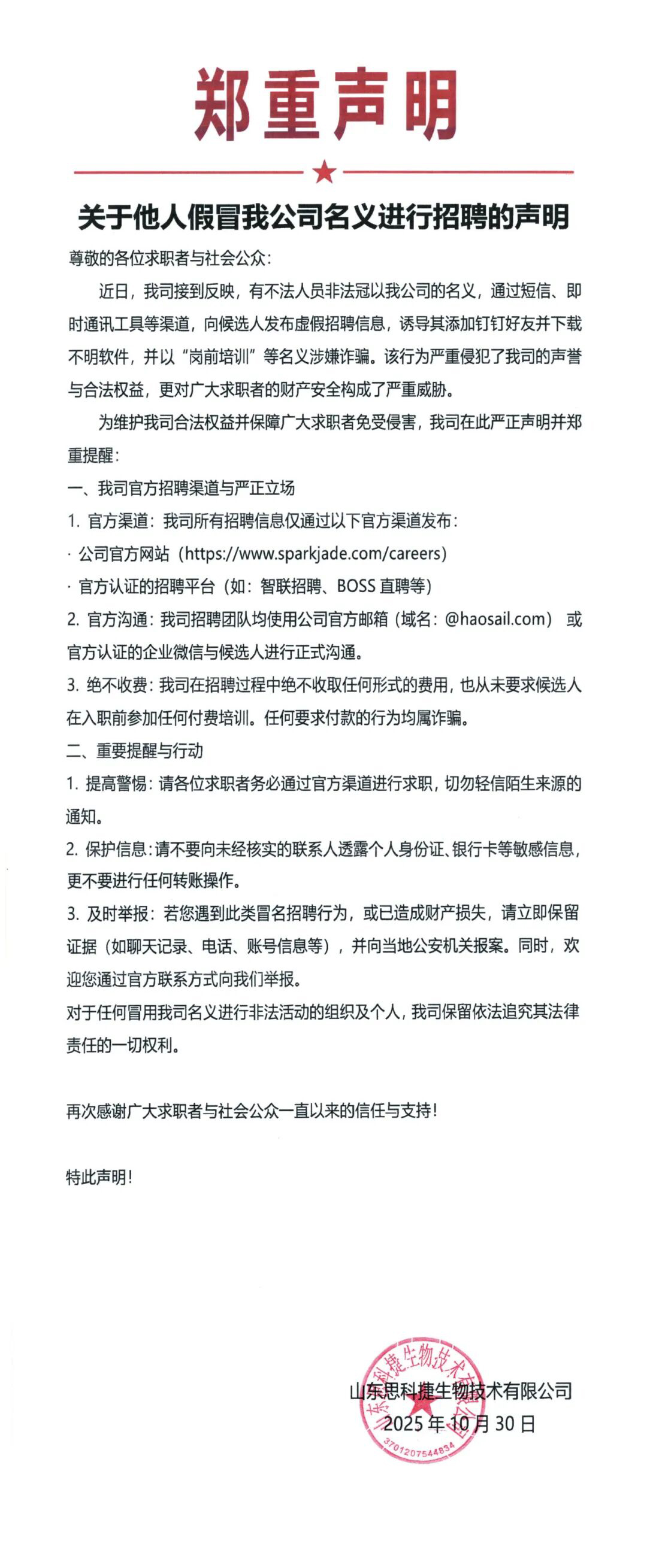 谨防诈骗|关于他人假冒我公司名义进行招聘的声明
