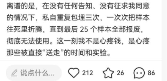 某医学博士生把辛辛苦苦造模几个月的小鼠肝原位瘤组织外送给某病理外包公司,两周都没出结果,最后反而因为实验员操作失误,把样本脱水脱过了,根本没法用。而且没有经过楼主同意,擅自多次重复包埋样本,组织直接彻底报废。销售说可以赔偿,结果得到的只有拖延时间和逃避问题。