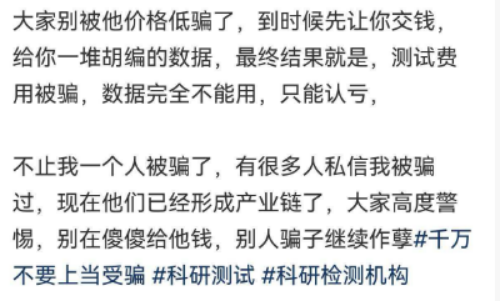 这位老师做课题时,需要外送一部分实验,出于经费考量,选择了一家报价低的外包公司。在项目开展前,对方要求要先交钱,结果交了钱之后交付的是一堆胡编的数据,最终检测费也交了数据完全不能用。